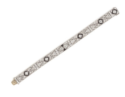 An Art Deco Platinum, Onyx and Diamond Bracelet,