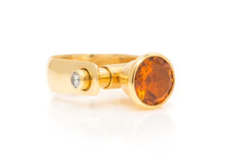 containing one round shape citrine measuring approximately 9.82 in diameter and two round brilliant cut diamonds weighing approximately 0.30 carat totalStamp: 18K 750.