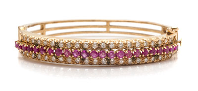 A Yellow Gold, Ruby and Diamond Bangle Bracelet,