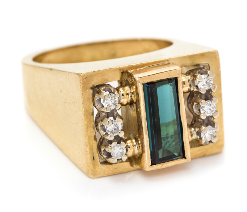 An 18 Karat Yellow Gold, Green Tourmaline and Diamond Ring,