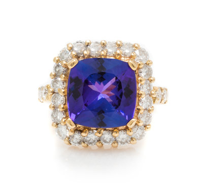 A 14 Karat Yellow Gold, Tanzanite and Diamond Ring,