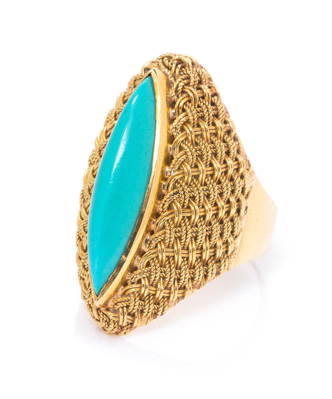 An 18 Karat Gold and Turquoise Ring, Italian,