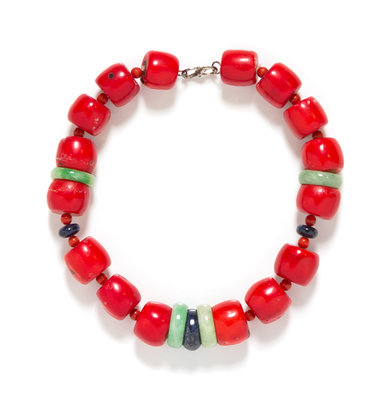 A Coral, Jade, and Sapphire Bead Necklace,
