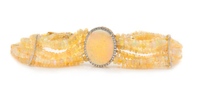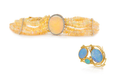 A Collection of Yellow Gold, Opal and Diamond Jewelry,