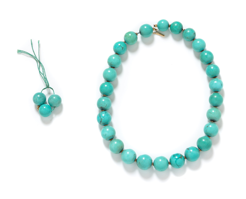 A Yellow Gold and Turquoise Bead Necklace,