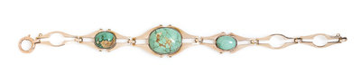 An Art Nouveau 9 Karat Rose Gold and Turquoise Bracelet, Murrle Bennett & Co.,