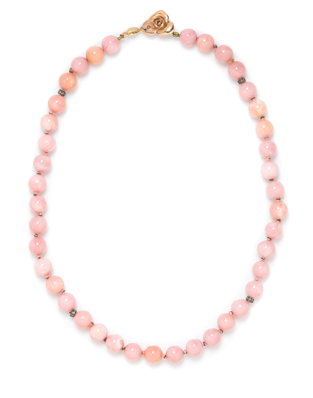 An 18 Karat Rose Gold, Colored Diamond and Pink Hardstone Bead Necklace, Eve Alfille,