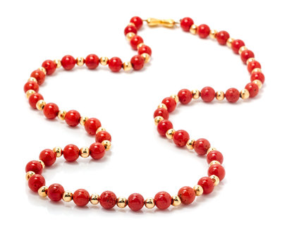 An 18 Karat Yellow Gold and Coral Bead Necklace, Pertegato Enrico,