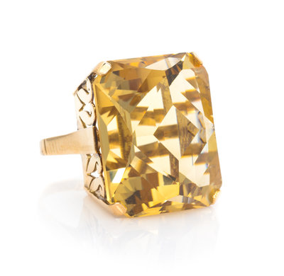 A Retro 14 Karat Yellow Gold and Citrine Ring,