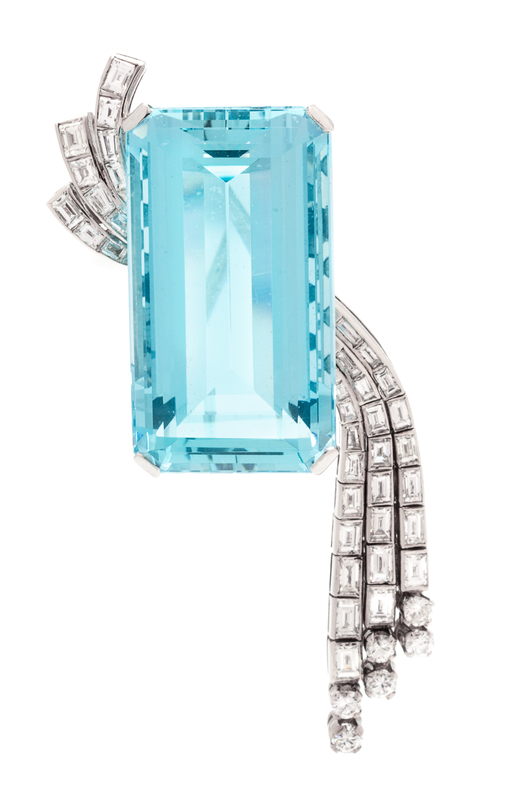 A Platinum, Diamond and Aquamarine Brooch, Circa 1950,