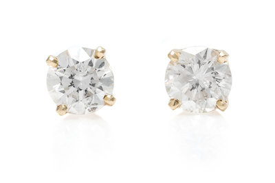 containing two round brilliant cut diamonds weighing approximately 1.40 carats total, screw backs.Stamp: 585.