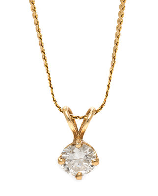 containing one round brilliant cut diamond weighing approximately 0.78 carat, the pendant suspended from a 14 karat yellow gold chain.Chain stamp: 14kt ITALY.