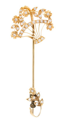 An 18 Karat Yellow Gold and Diamond Flower Basket Motif Jabot,