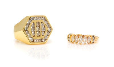 A Collection of 14 Karat Yellow Gold and Diamond Rings,