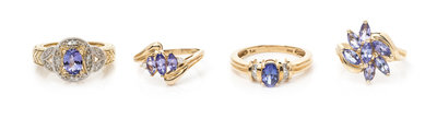 A Collection of 14 Karat Yellow Gold, Tanzanite and Diamond Rings,