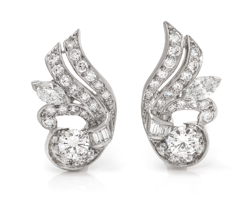 A Pair Platinum and Diamond Earclips,