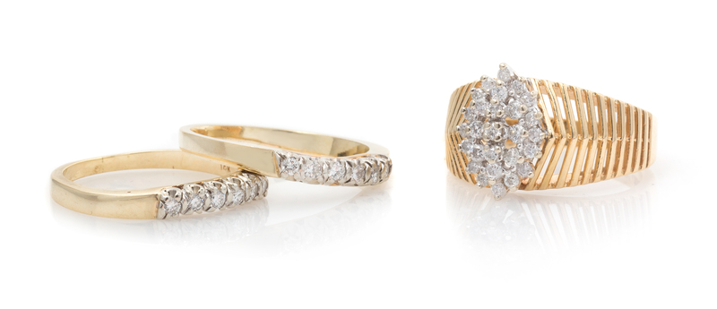 A Collection of 14 Karat Yellow Gold and Diamond Rings,