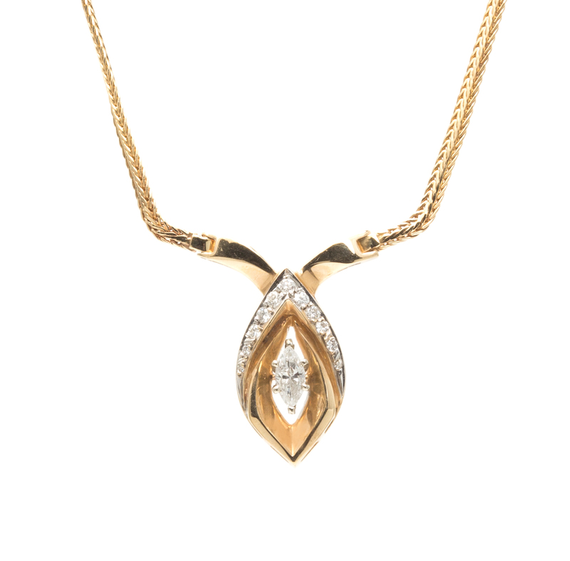 A 14 Karat Yellow Gold and Diamond Necklace,