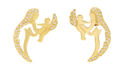 in an abstract angel motif, containing 86 round single cut diamonds weighing approximately 0.43 carat total.
