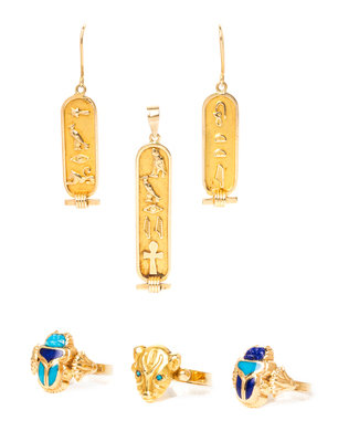 A Collection of Yellow Gold Egyptian Motif Jewelry,