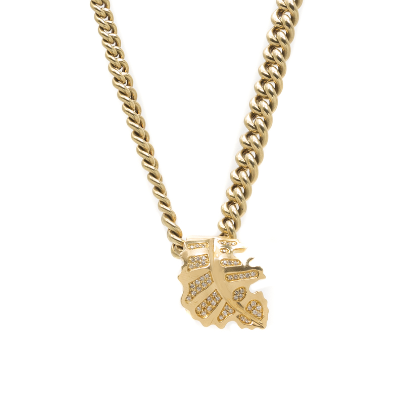 containing an 18 karat yellow gold and diamond motif ring with 53 round brilliant cut diamonds, together with a 14 karat yellow gold necklace featuring a tapered double curb style design with a tongue style claspStamp: 750.Stamp: 585.