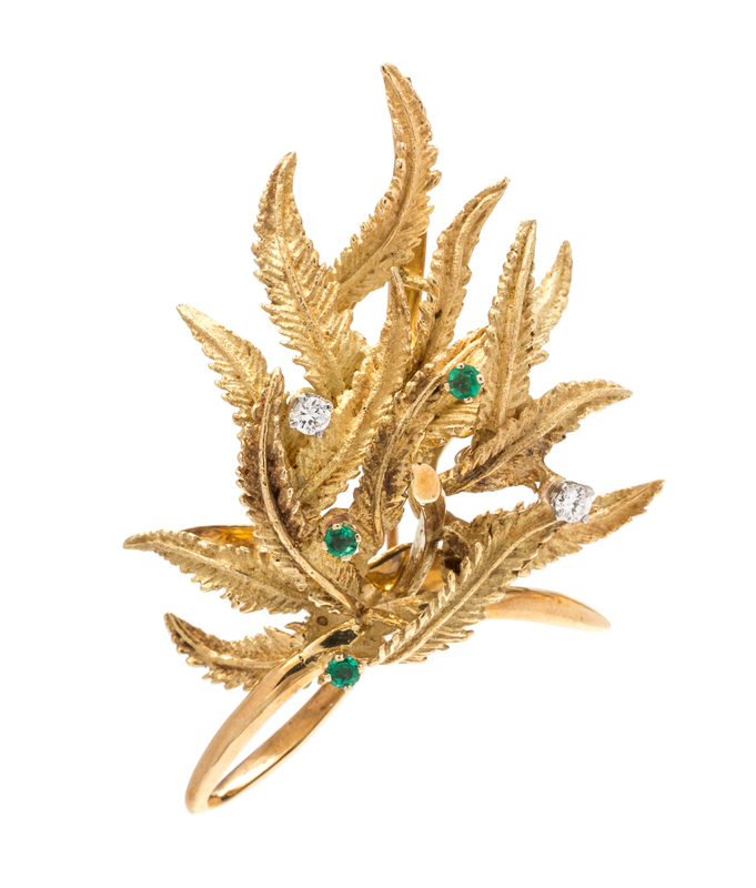 An 18 Karat Yellow Gold, Emerald and Diamond Brooch,