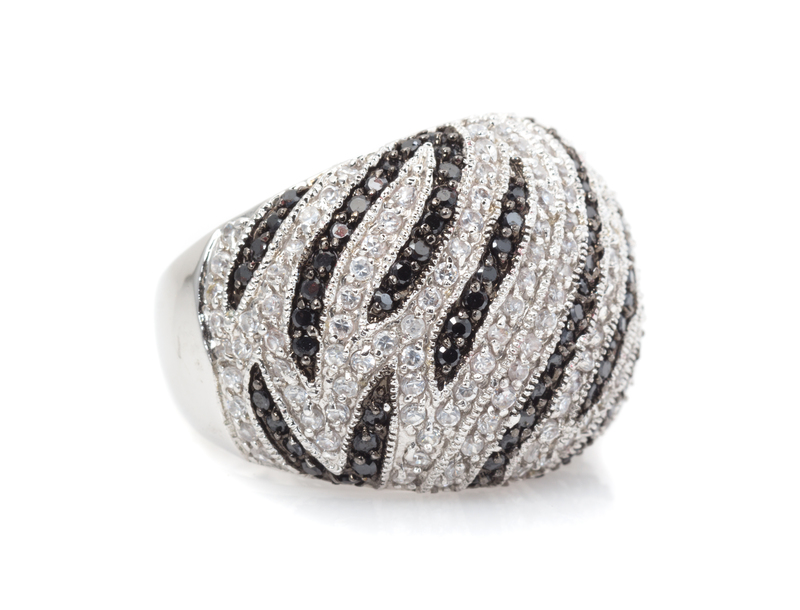 A White Gold, Diamond and Black Diamond Swirl Motif Ring,