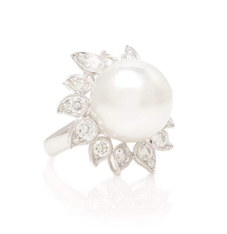 A Platinum, Cultured South Sea Pearl and Diamond Ring, H. Emperor,