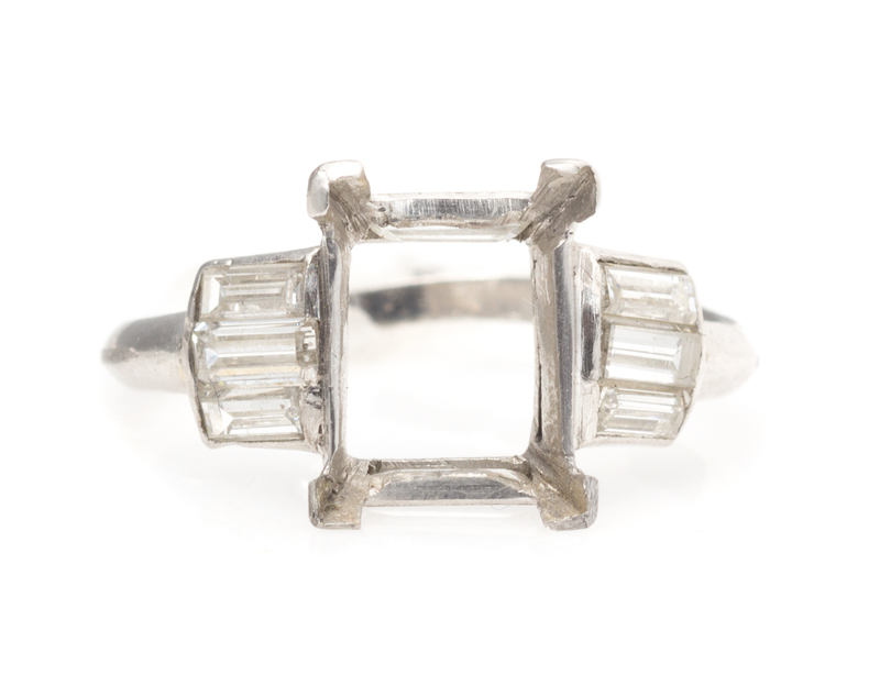 designed for a rectangular stone measuring approximately 10.70 x 7.90 mm, containing eight baguette cut diamonds weighing approximately 1.22 carats total.