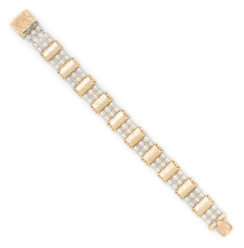 A 14 Karat Yellow Gold and Pearl Bracelet, Lucien Picard,
