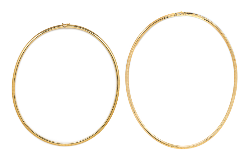Two 14 Karat Yellow Gold Omega Necklaces,