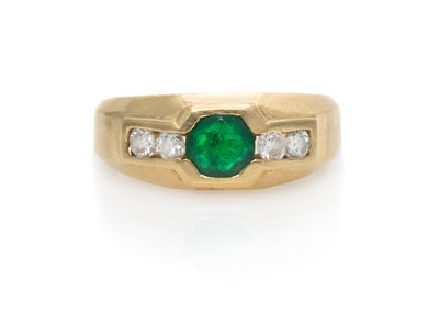 A 14 Karat Yellow Gold, Emerald and Diamond Ring,
