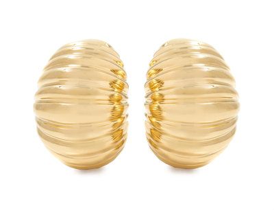 A Pair of 18 Karat Yellow Gold Ribbed Earclips, Italy,