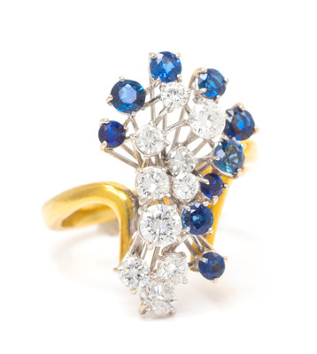 An 18 Karat Bicolor Gold, Diamond and Sapphire Cocktail Ring,