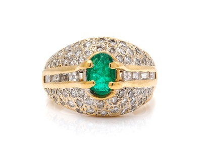 A 14 Karat Yellow Gold, Emerald and Diamond Ring,