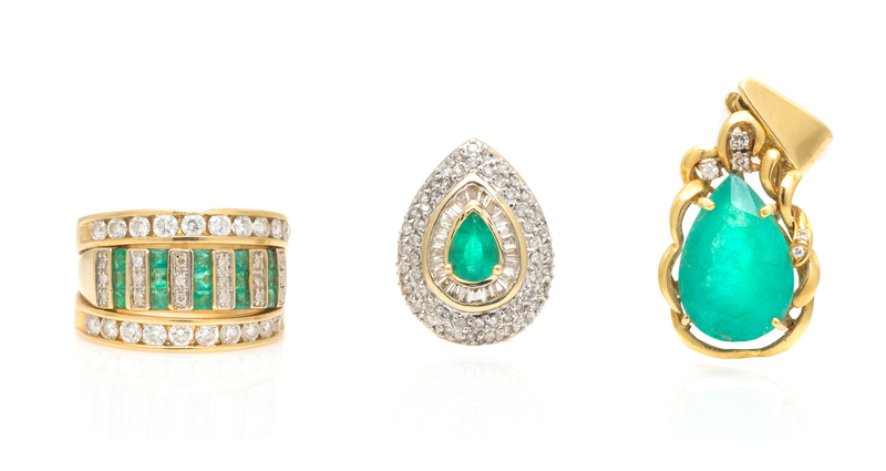 A Collection of Yellow Gold, Emerald and Diamond Jewelry,