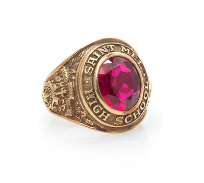 A 10 Karat Yellow Gold and Synthetic Ruby Class Ring, Circa 1951,