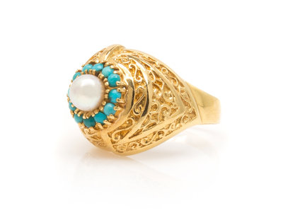A Collection of 18 Karat Yellow Gold, Cultured Pearl, Sapphire and Turquoise Rings,