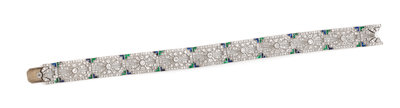 A Platinum, Diamond, Emerald and Sapphire Bracelet,