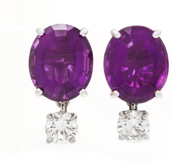 A Pair of White Gold, Amethyst and Diamond Earrings,