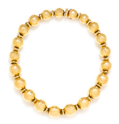 consisting of 20 hammered texture gold beads measuring approximately 15.44-18.67 mm diameter alternating with gold spacer beads strung on wire with a hammered texture boule clasp.Stamp: WEBB 18K.