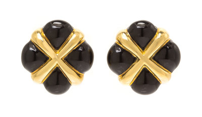 A Pair of 18 Karat Yellow Gold and Enamel Earclips, David Webb,