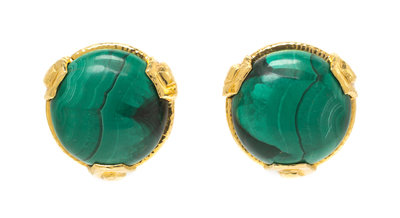A Pair of 18 Karat Yellow Gold and Malachite Earclips, David Webb,