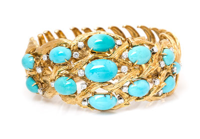 An 18 Karat Yellow Gold, Turquoise and Diamond Bracelet, David Webb,