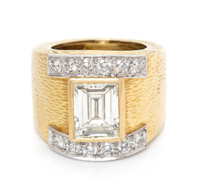 An 18 Karat Yellow Gold, Platinum and Diamond Ring, David Webb,