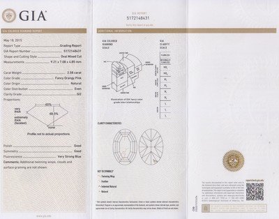 A 2.58 Carat Oval Mixed Cut Fancy Orangy Pink Diamond,