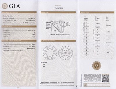 An 11.90 Carat Round Brilliant Cut Diamond,