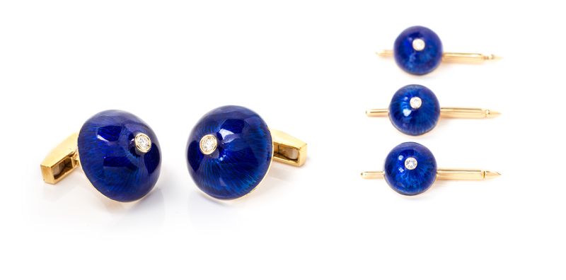 An 18 Karat Yellow Gold, Diamond and Enamel Dress Set,