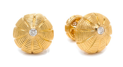 A Pair of 18 Karat Yellow Gold and Diamond Taj Mahal Cufflinks, Schlumberger for Tiffany & Co.,