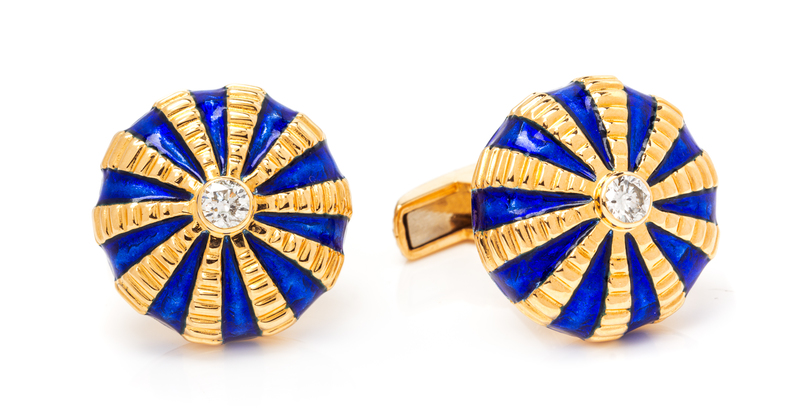 A Pair of 18 Karat Yellow Gold, Diamond and Enamel Cufflinks, Tiffany & Co.,